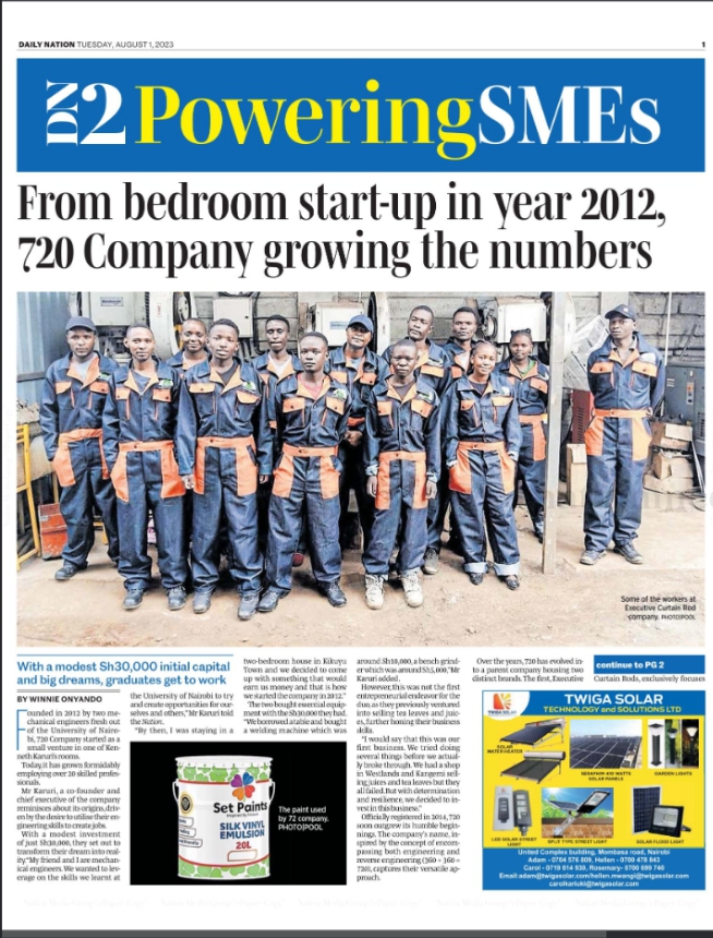 Seven Twenty Holdings is a Limited liability company duly registered in Kenya. It was founded and registered in 2014 with it’s operations based in Kiambu County.